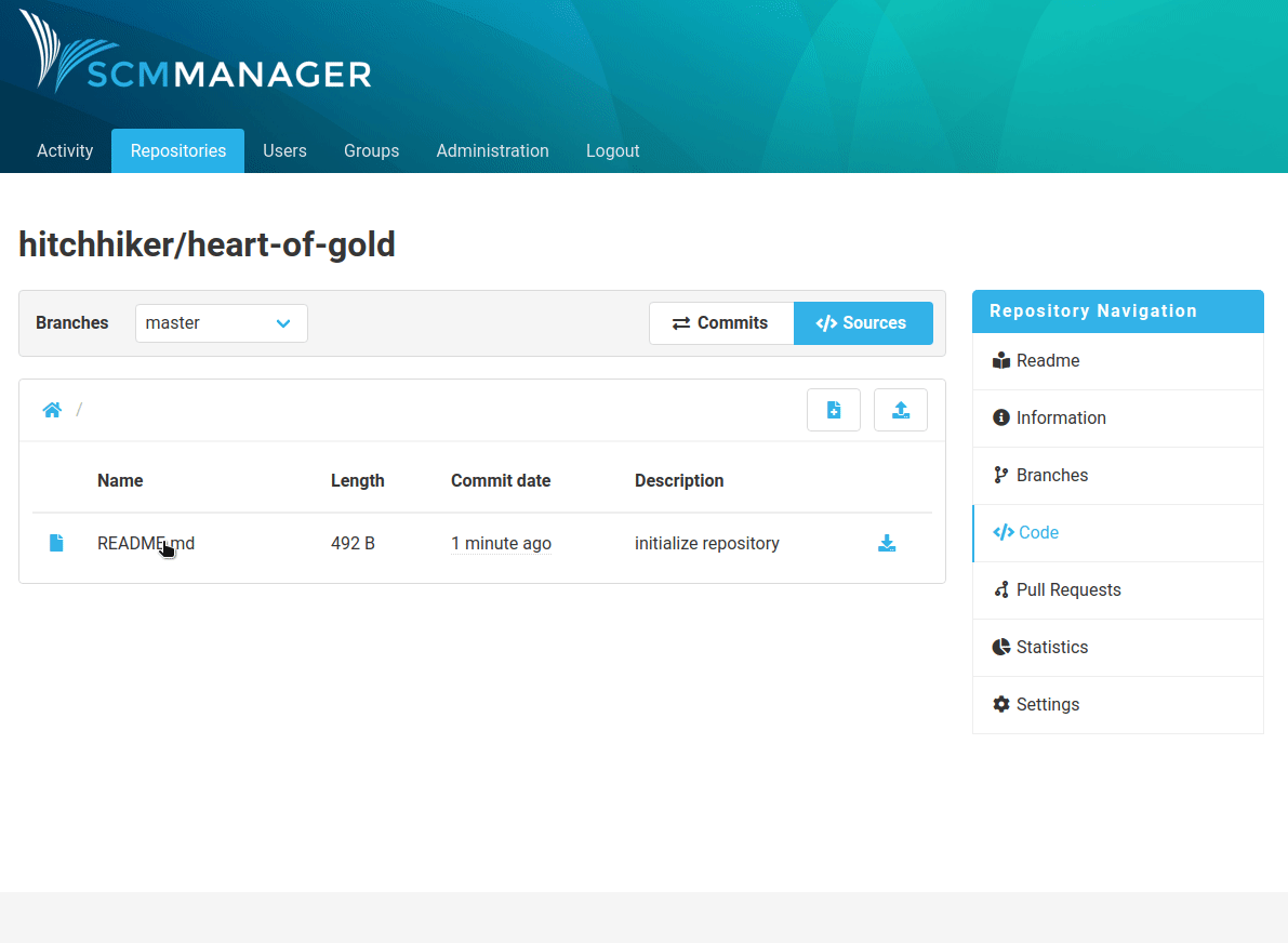 On repository creation you can now initialize your repository with an initial commit, which contains a readme with title and description of the repository.
